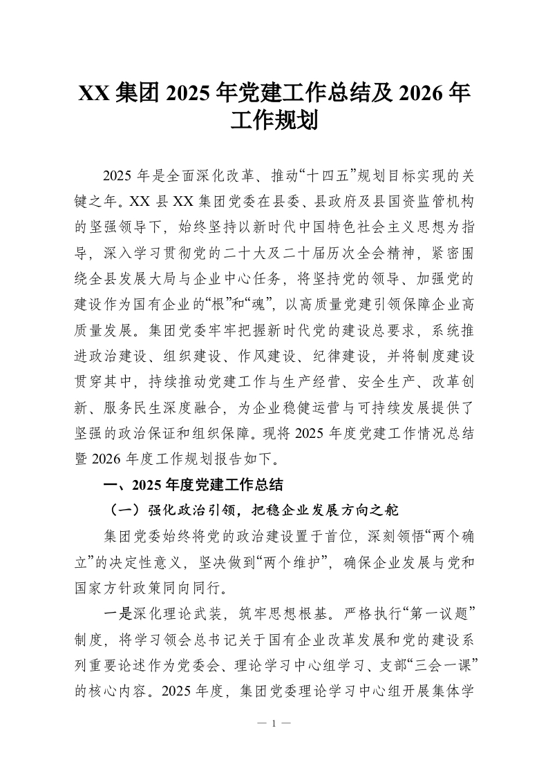 首页工作文档XX集团2025年党建工作总结及2026年工作规划