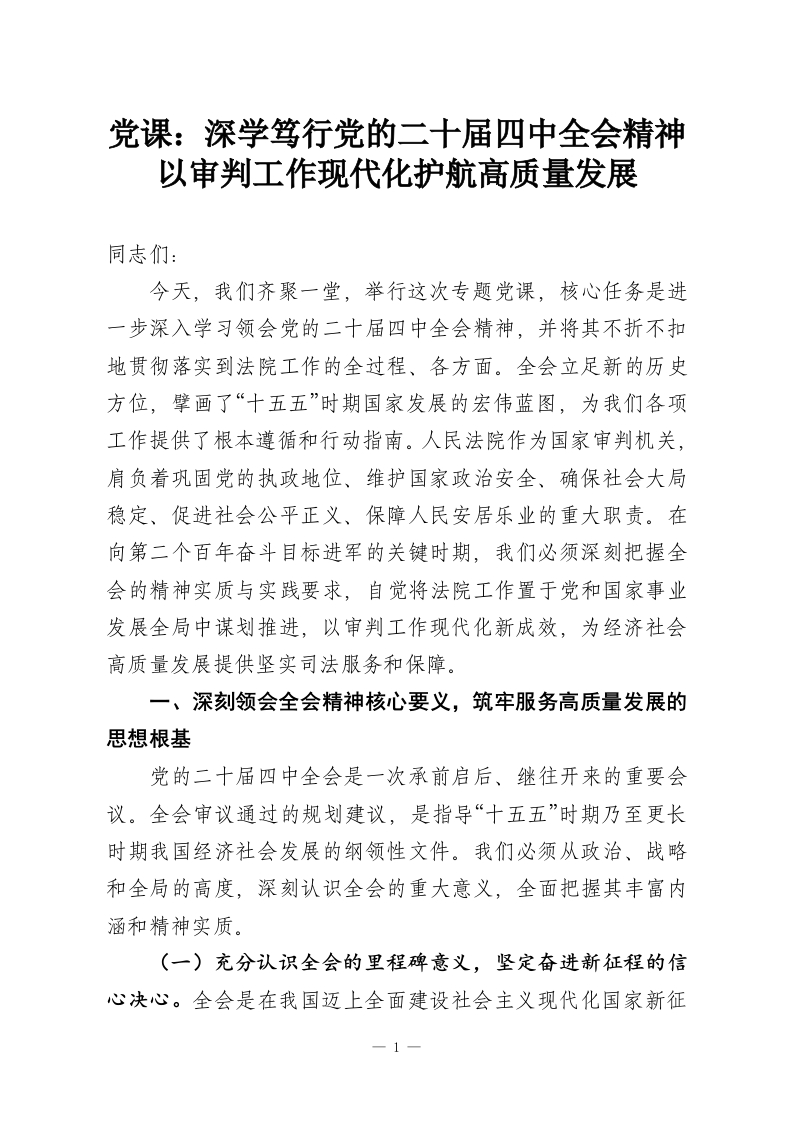 党课:深学笃行党的二十届四中***精神以审判工作现代化护航高质量发展