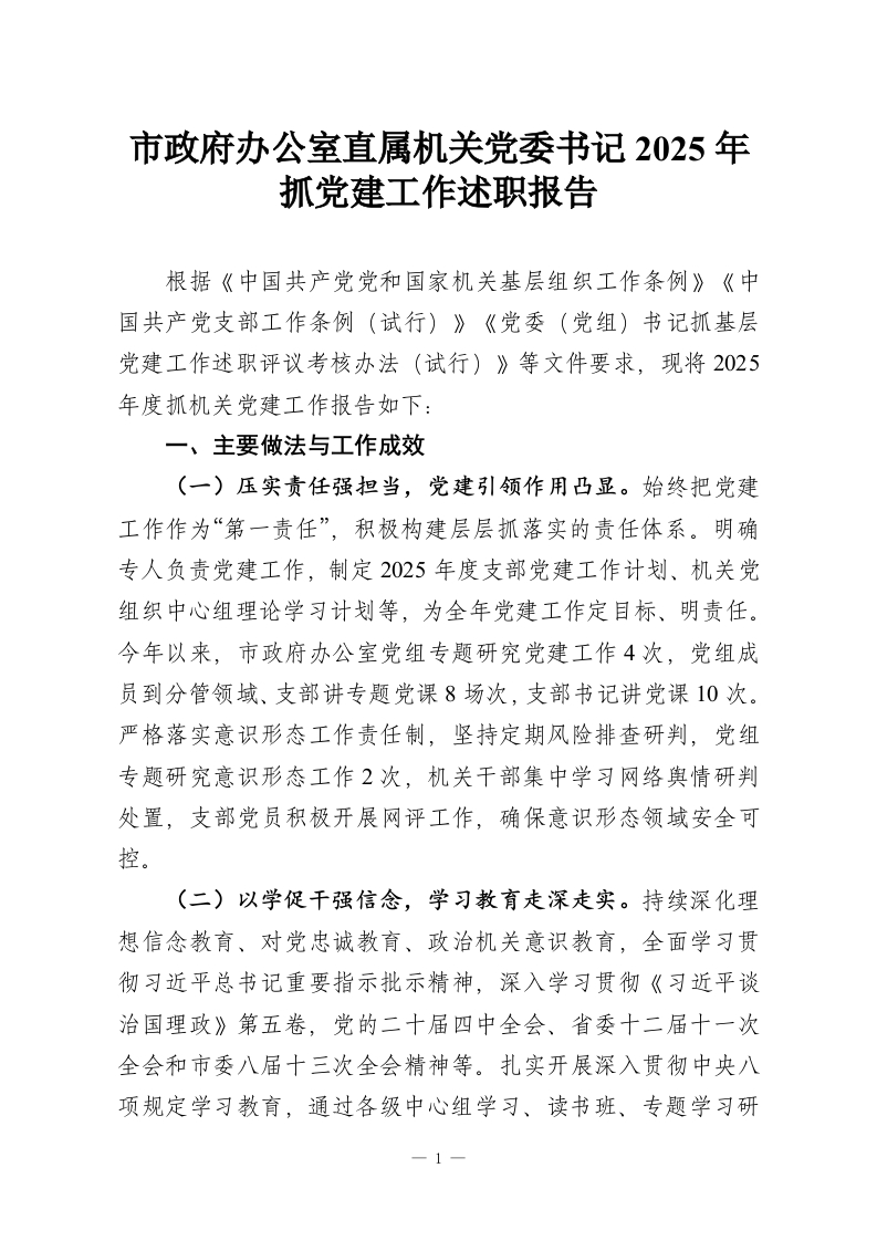 市***办公室直属机关党委书记2025年抓党建工作述职报告