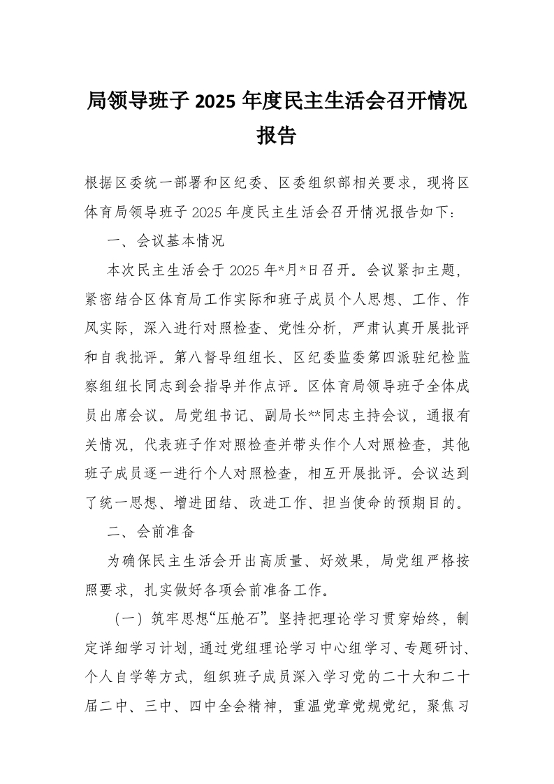 首页材料汇编局领导班子2025年度民主生活会召开情况报告