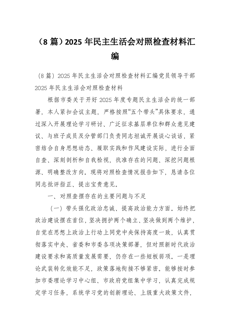 首页材料汇编(8篇)2025年民主生活会对照检查材料汇编