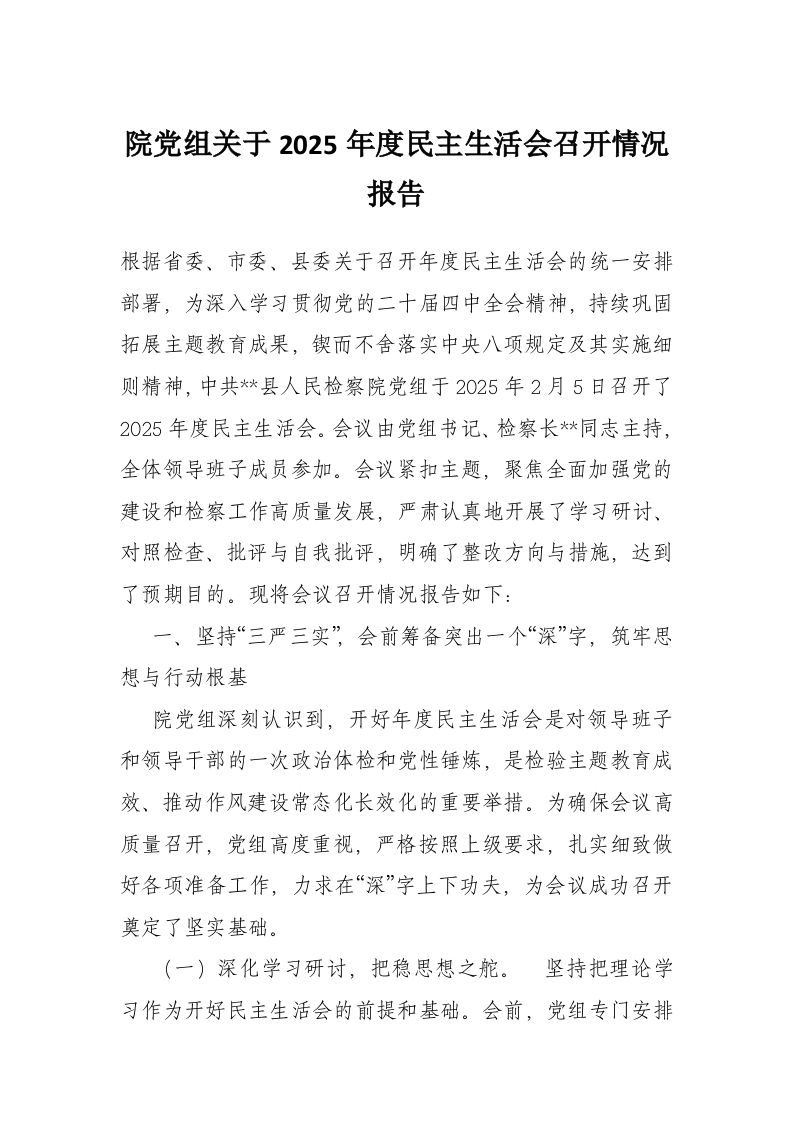 首页写作素材院党组关于2025年度民主生活会召开情况报告
