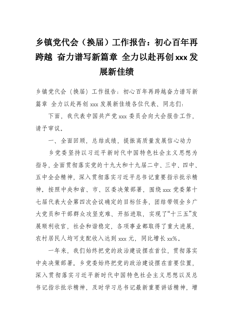 乡镇党代会(换届)工作报告:初心百年再跨越 奋力谱写新篇章 全力以赴再创xxx发展新佳绩