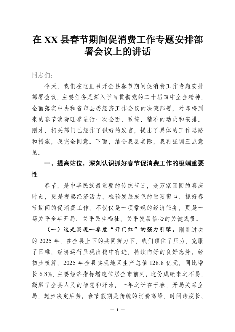 首页精选范文在XX县春节期间促消费工作专题安排部署会议上的讲话