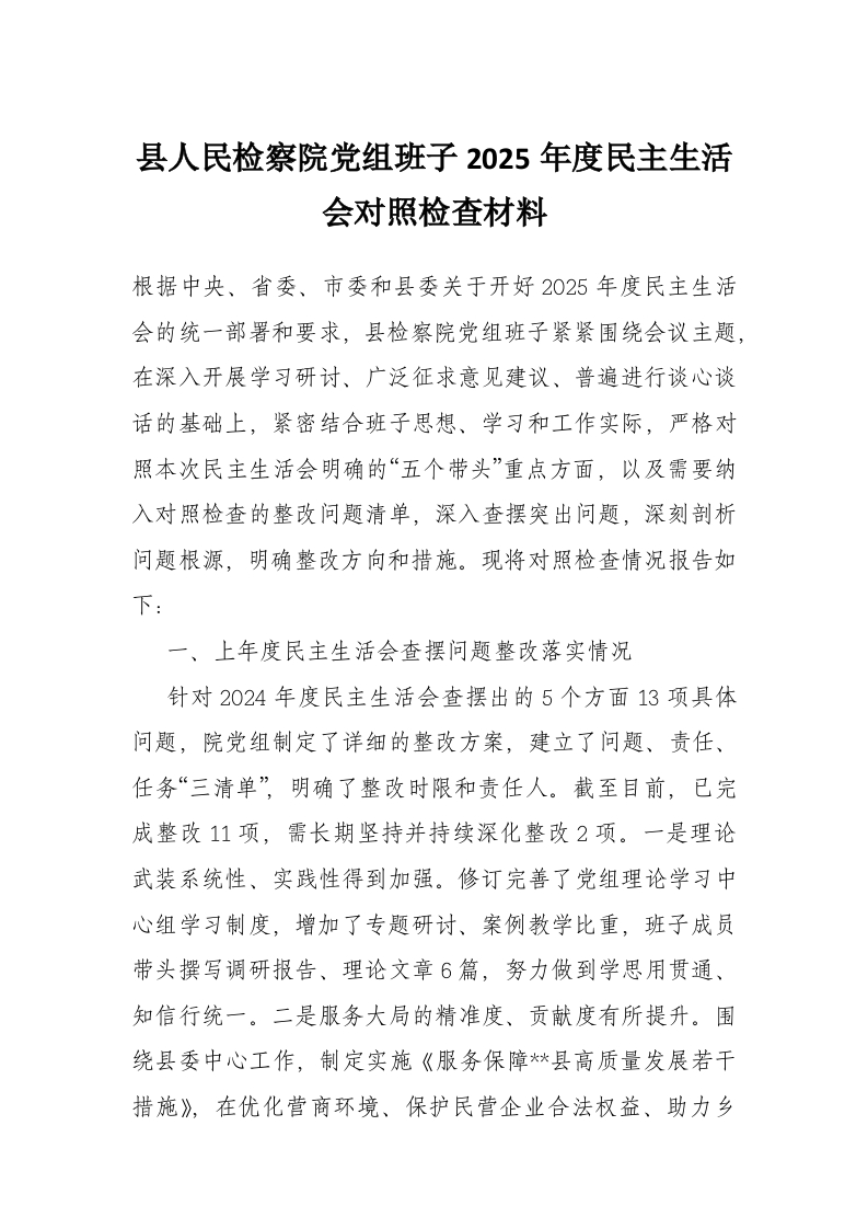 首页写作素材县人民检察院党组班子2025年度民主生活会对照检查材料