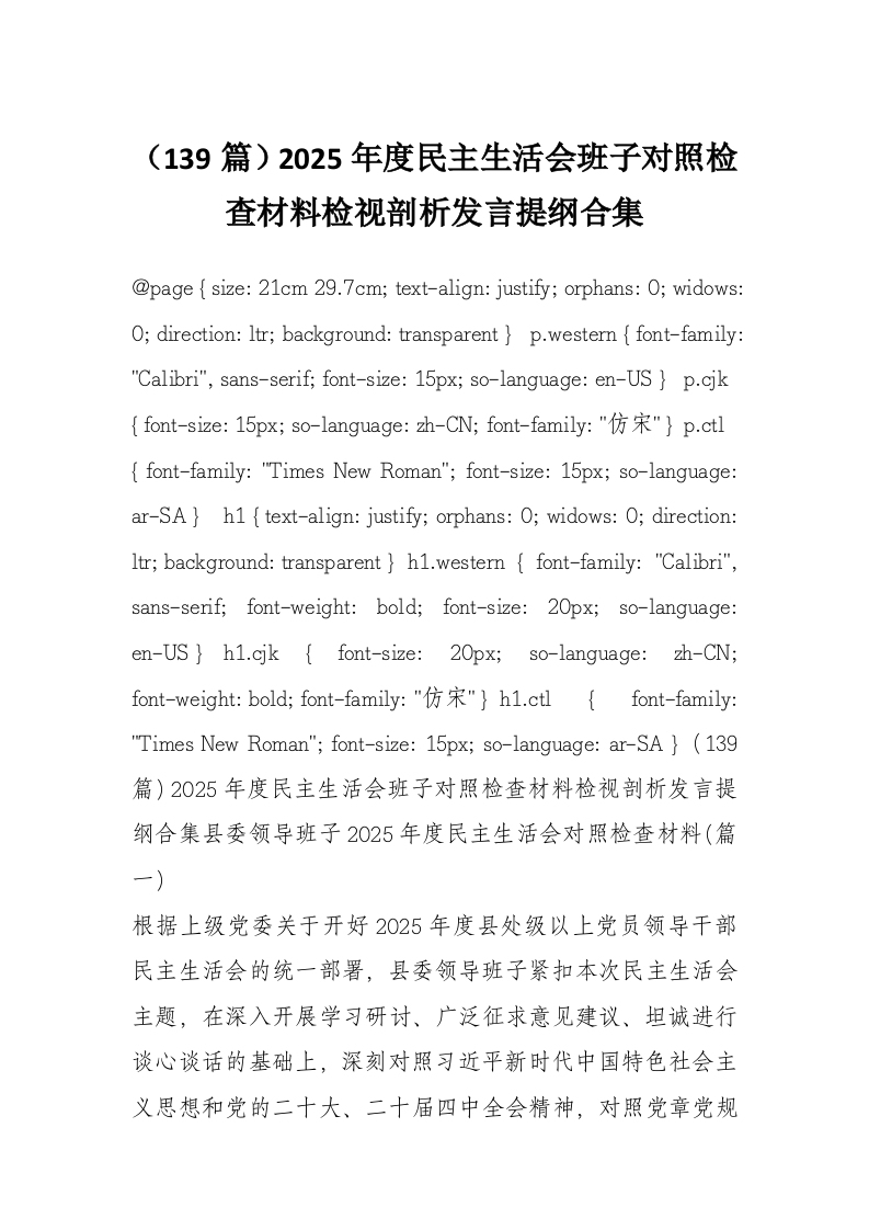 (139篇)2025年度民主生活会班子对照检查材料检视剖析发言提纲合集