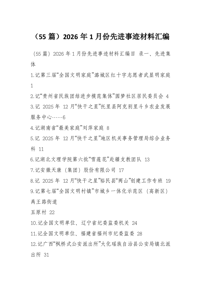 (55篇)2026年1月份先进事迹材料汇编