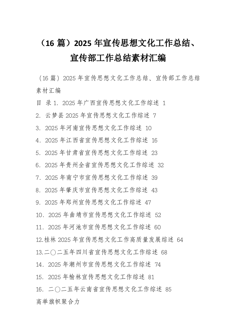 (16篇)2025年宣传思想文化工作总结、宣传部工作总结素材汇编