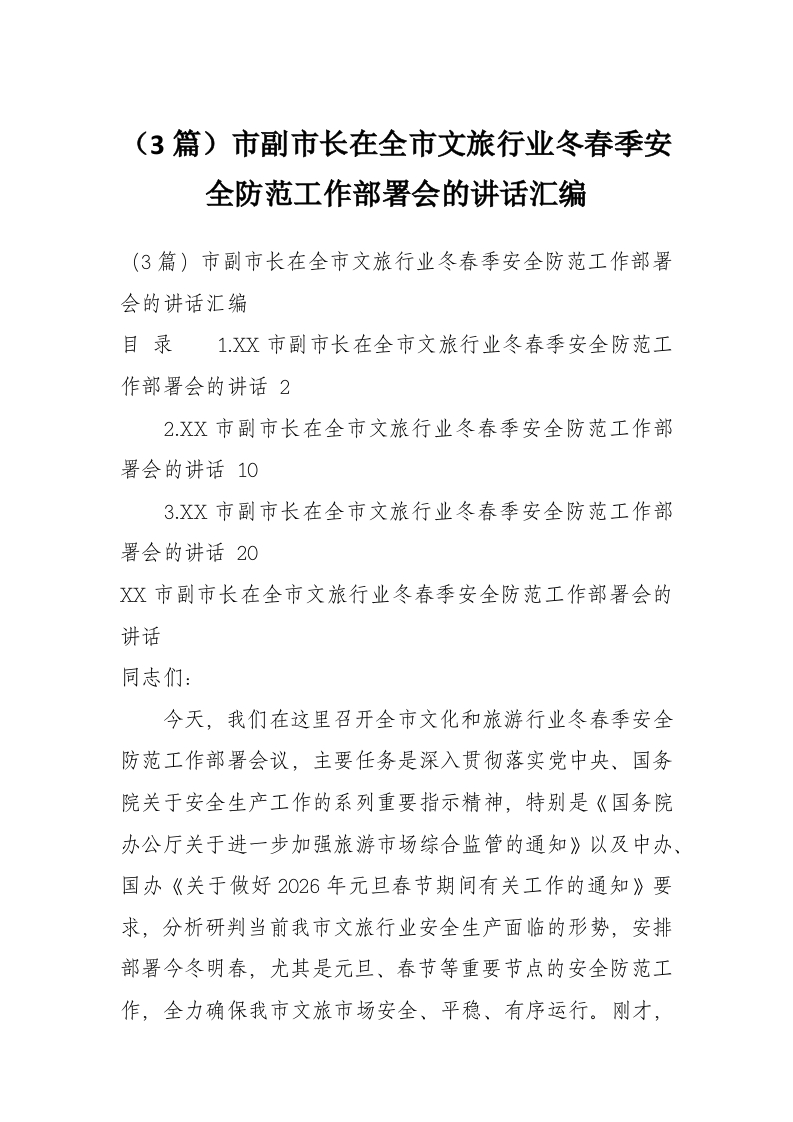 (3篇)市副市长在全市文旅行业冬春季安全防范工作部署会的讲话汇编