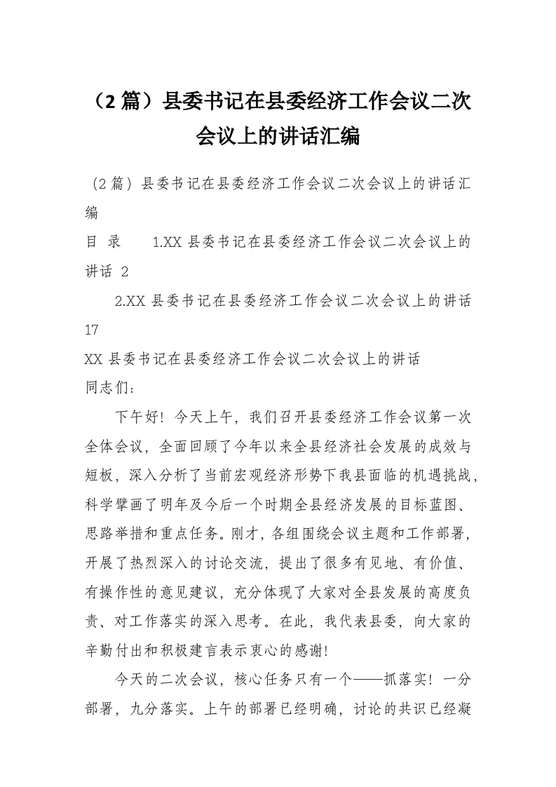 (2篇)县委书记在县委经济工作会议二次会议上的讲话汇编