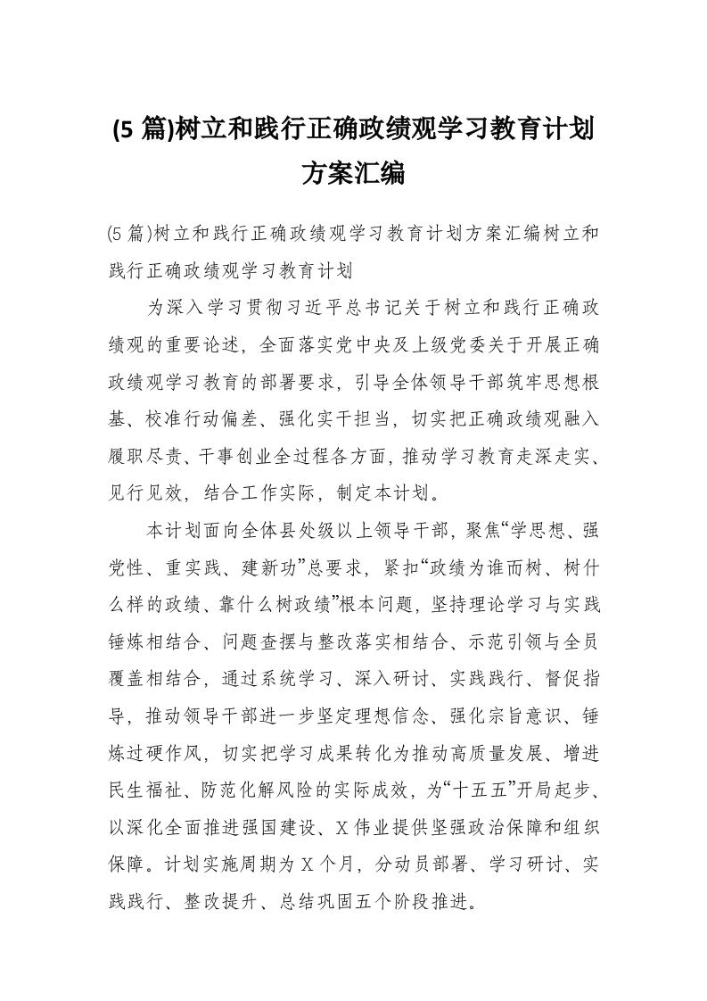 (5篇)树立和践行正确政绩观学习教育计划方案汇编