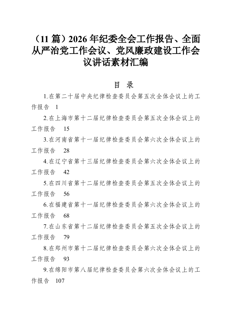 首页材料汇编(11篇)2026年纪委***工作报告、全面从严治党工作会议、党风廉政建设工作会议讲话素材汇编