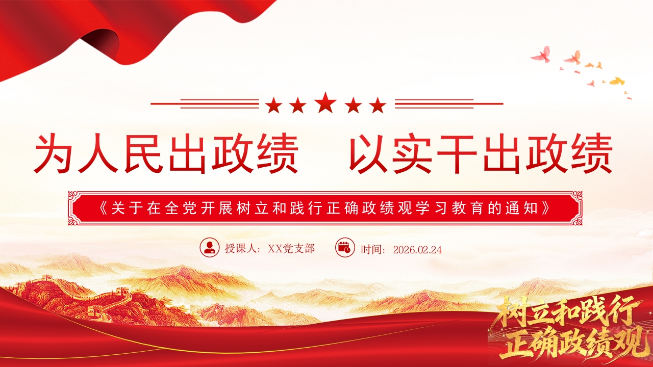 首页PPT模板红色精美为人民出政绩 以实干出政绩PPT树立和践行正确政绩观学习教育党课课件