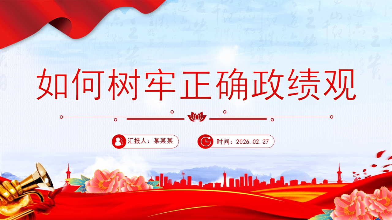 首页PPT模板简洁风如何树牢正确政绩观PPT党员干部学习教育党课课件