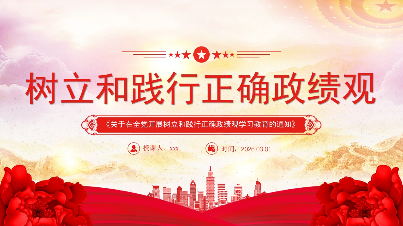首页PPT模板PPT课件:《关于在全党开展树立和践行正确政绩观学习教育的通知》