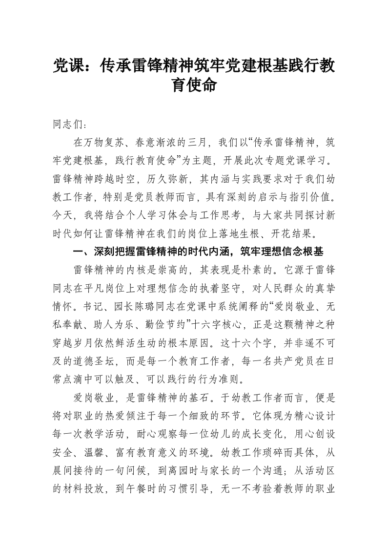 党课:传承雷锋精神筑牢党建根基践行教育使命