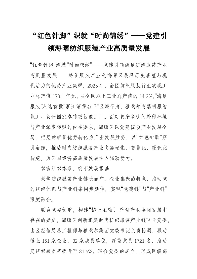 “红色针脚”织就“时尚锦绣”——党建引领海曙纺织服装产业高质量发展