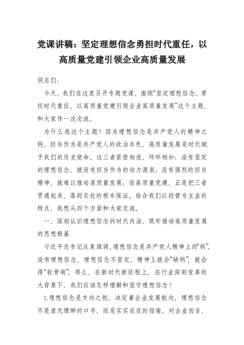 党课讲稿:坚定理想信念勇担时代重任,以高质量党建引领企业高质量发展