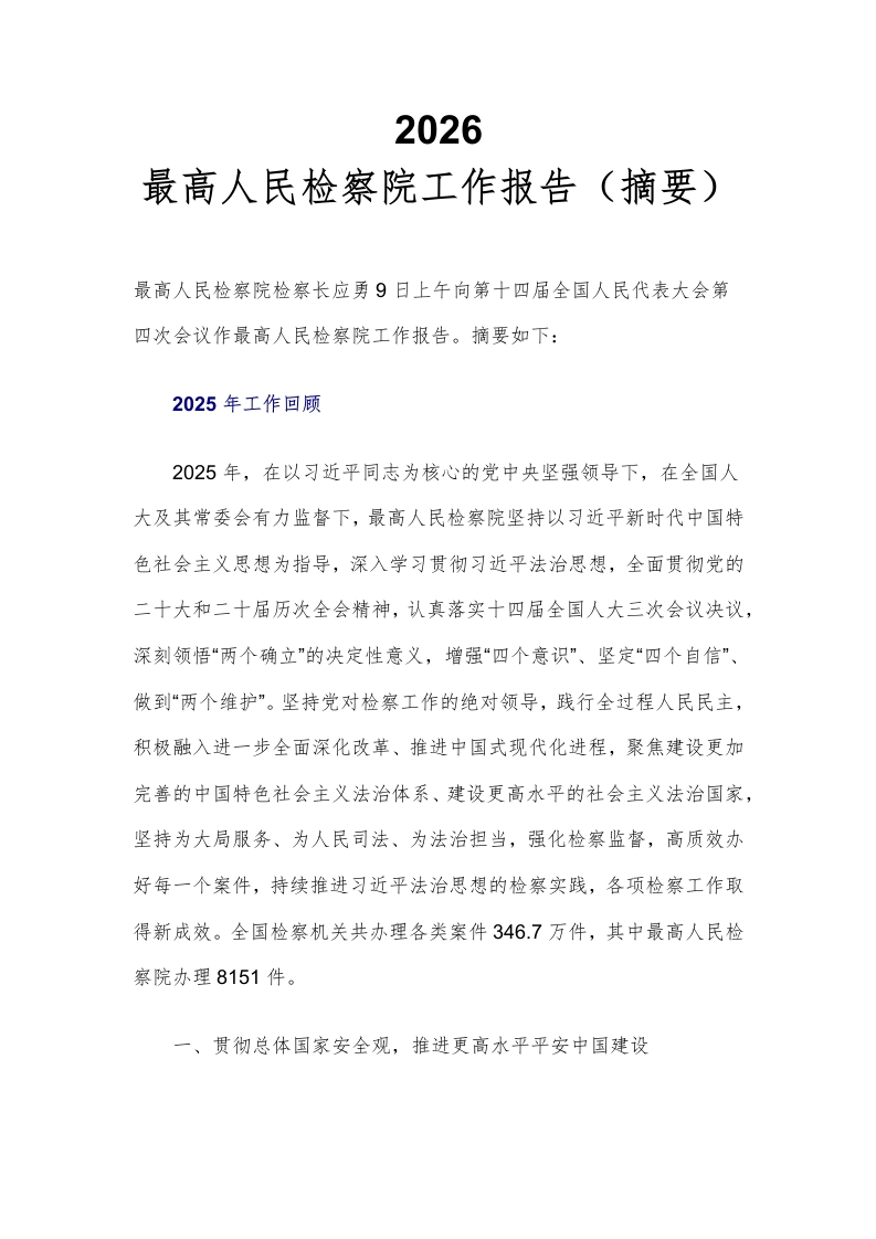 最高人民检察院工作报告PPT2026两会精神课件(讲稿)