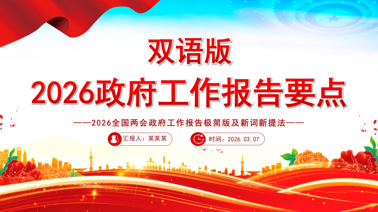 首页PPT模板精品双语版2026全国两会***工作报告要点及新词新提法PPT课件下载