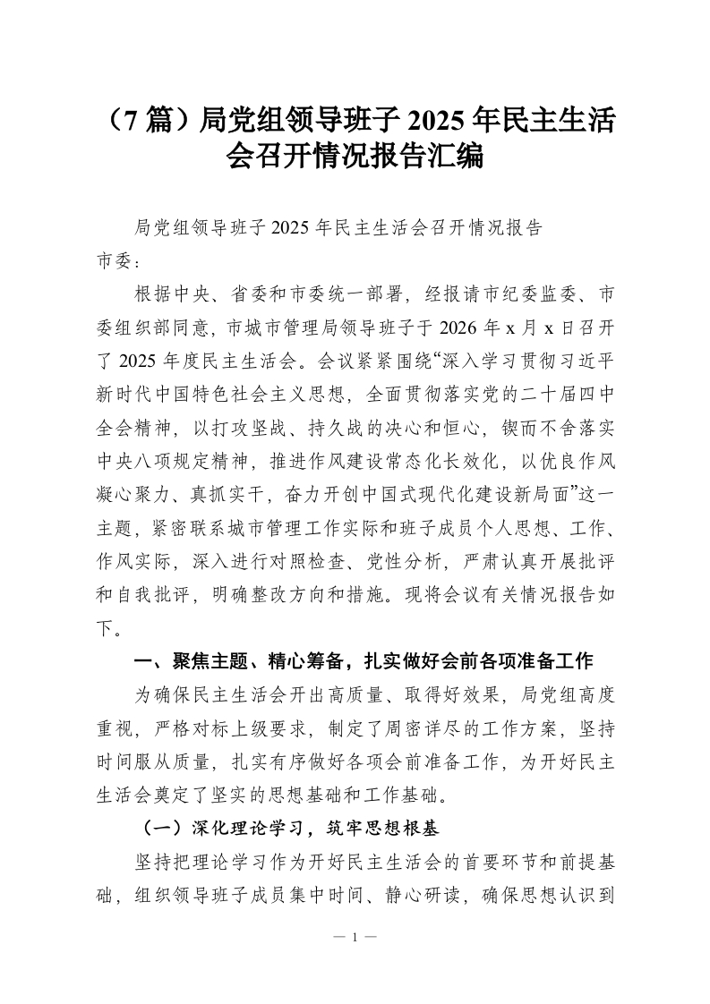 (7篇)局党组领导班子2025年民主生活会召开情况报告汇编