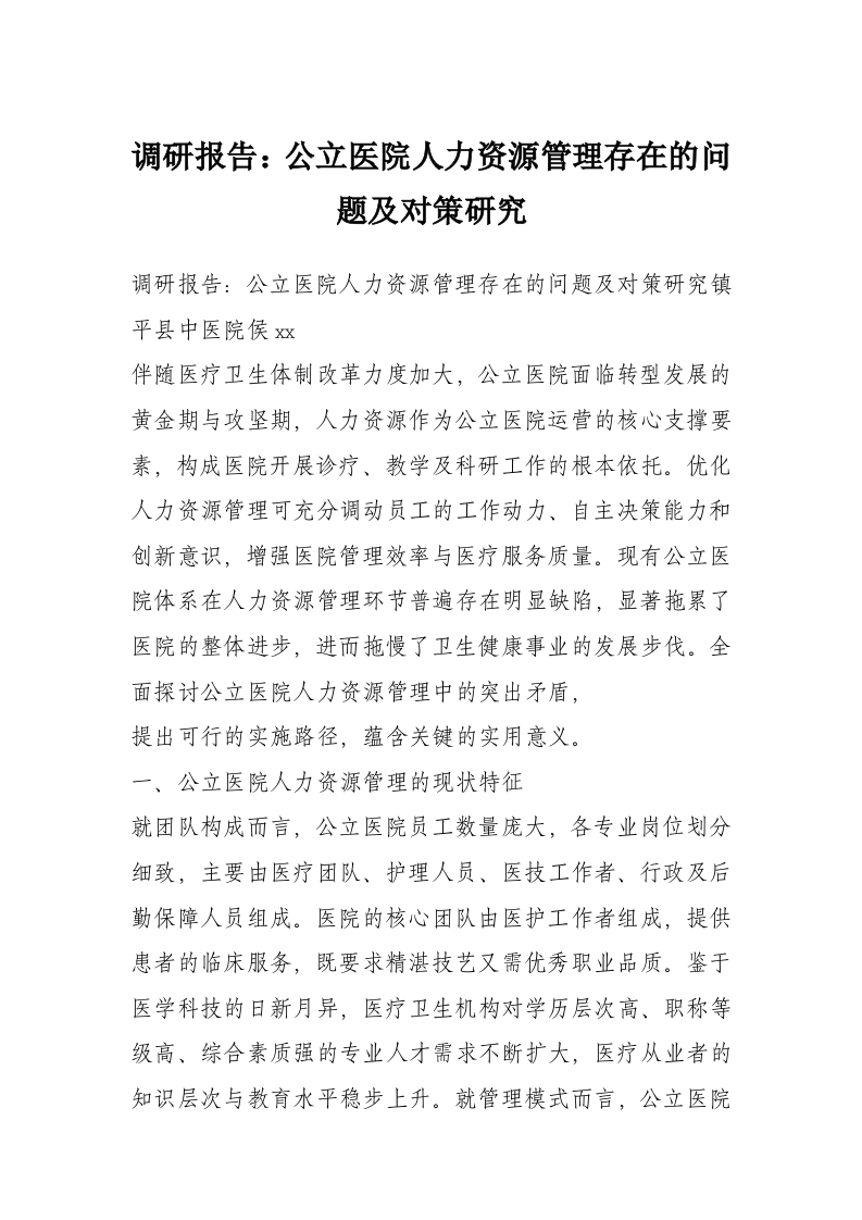 首页精选范文调研报告:公立医院人力资源管理存在的问题及对策研究