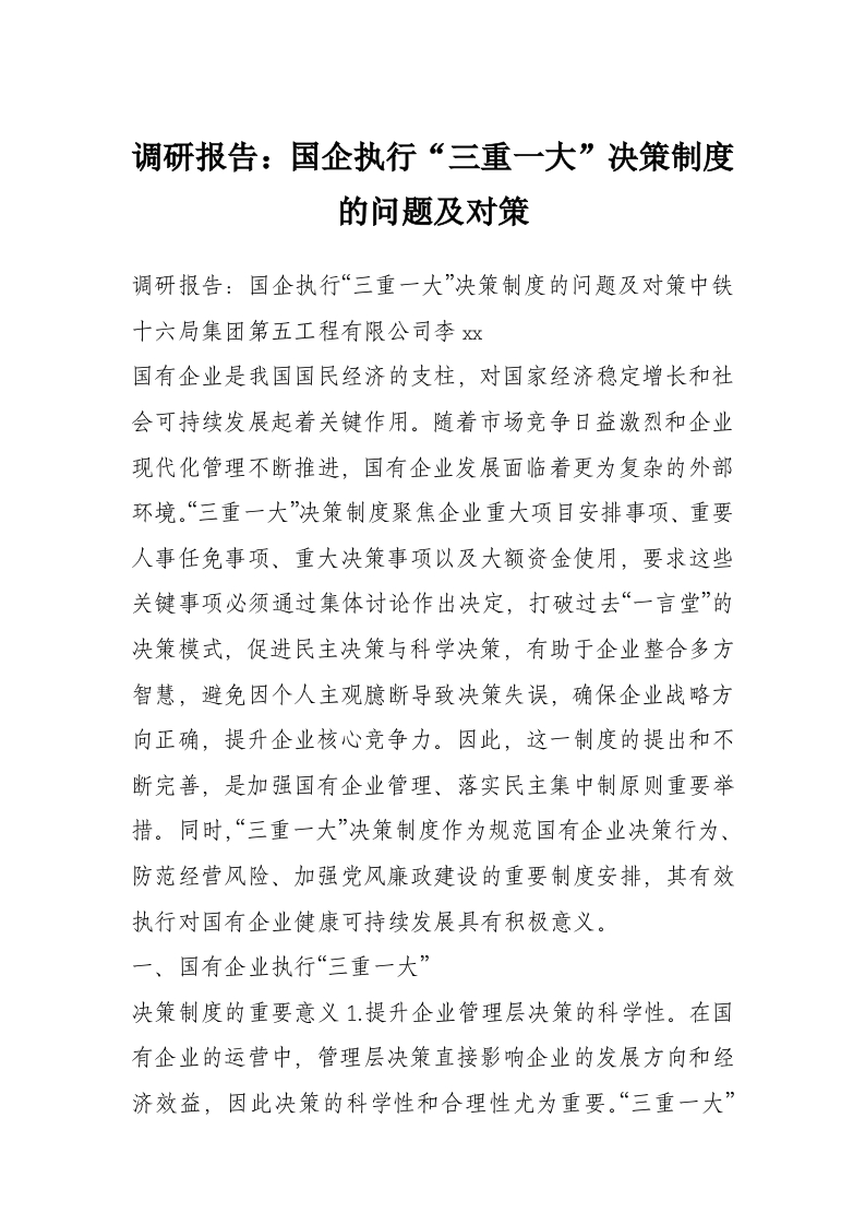 调研报告:国企执行“三重一大”决策制度的问题及对策