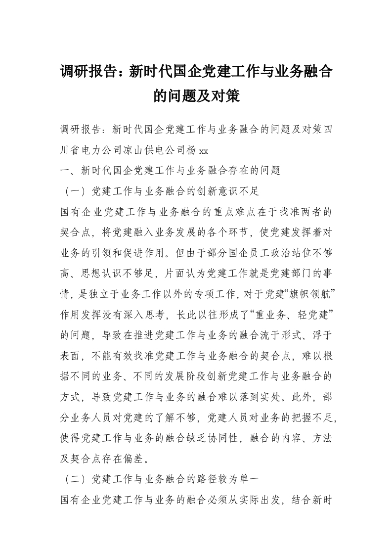 首页工作文档调研报告:新时代国企党建工作与业务融合的问题及对策