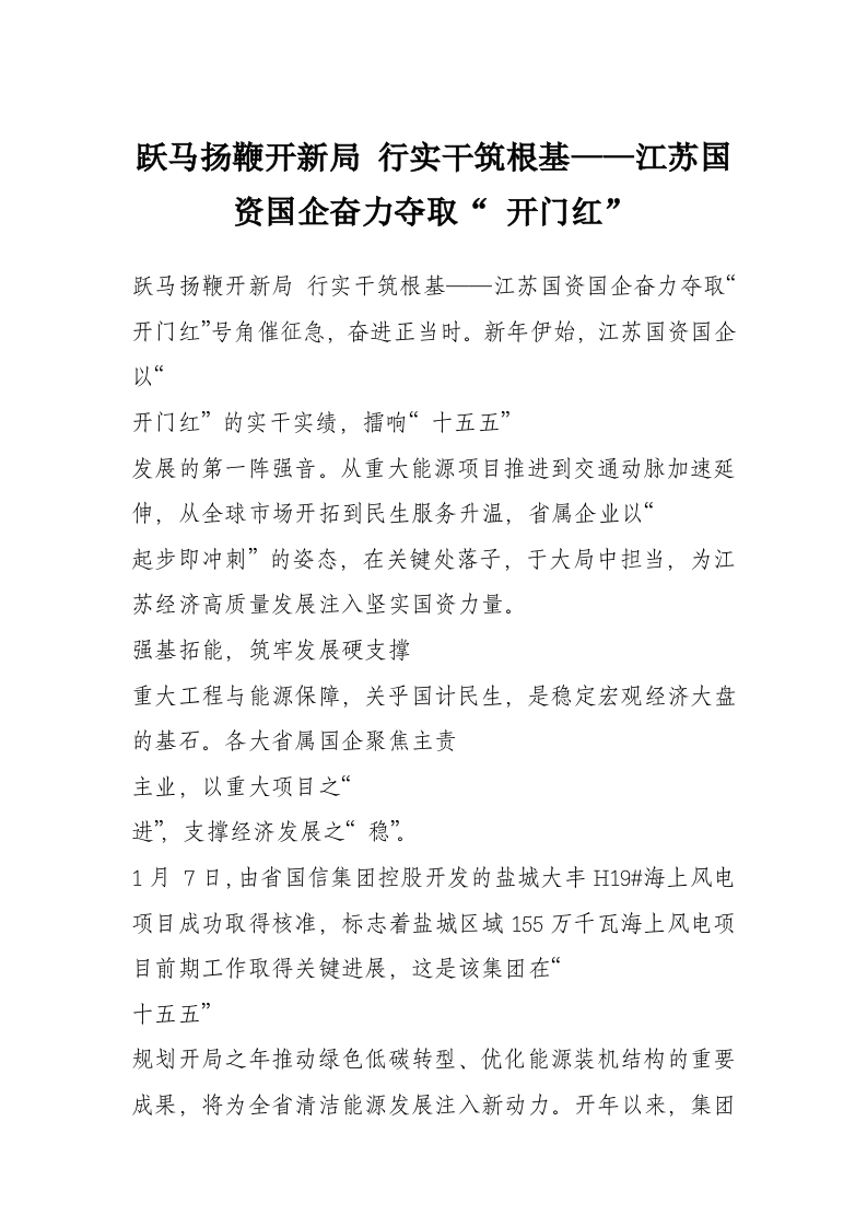 跃马扬鞭开新局 行实干筑根基——江苏国资国企奋力夺取“ 开门红”
