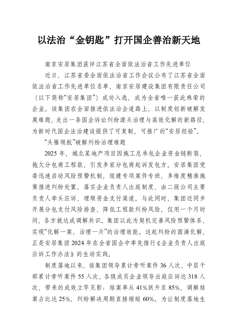 以法治“金钥匙”打开国企善治新天地