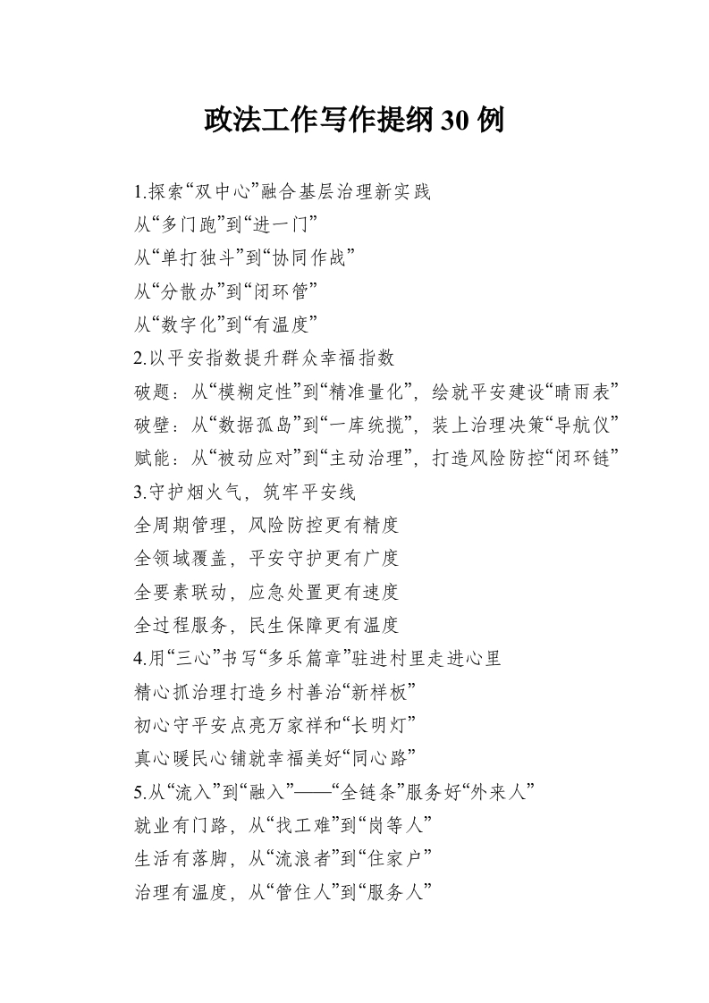 政法工作写作提纲30例