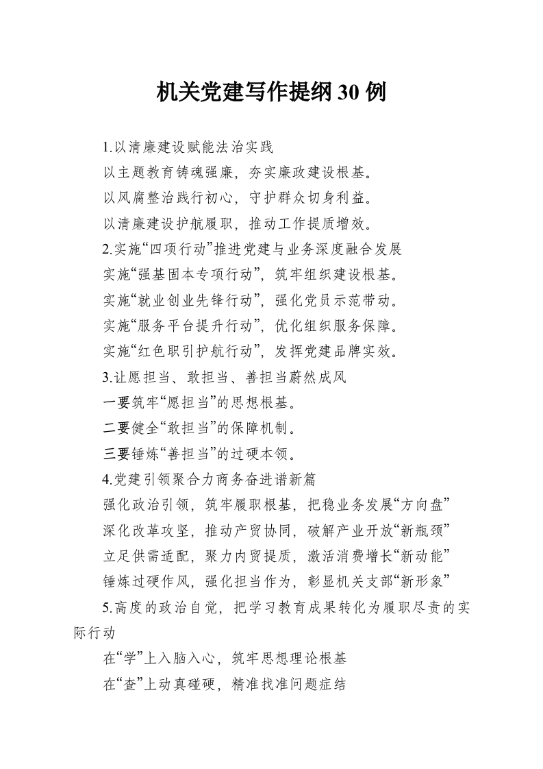 机关党建写作提纲30例