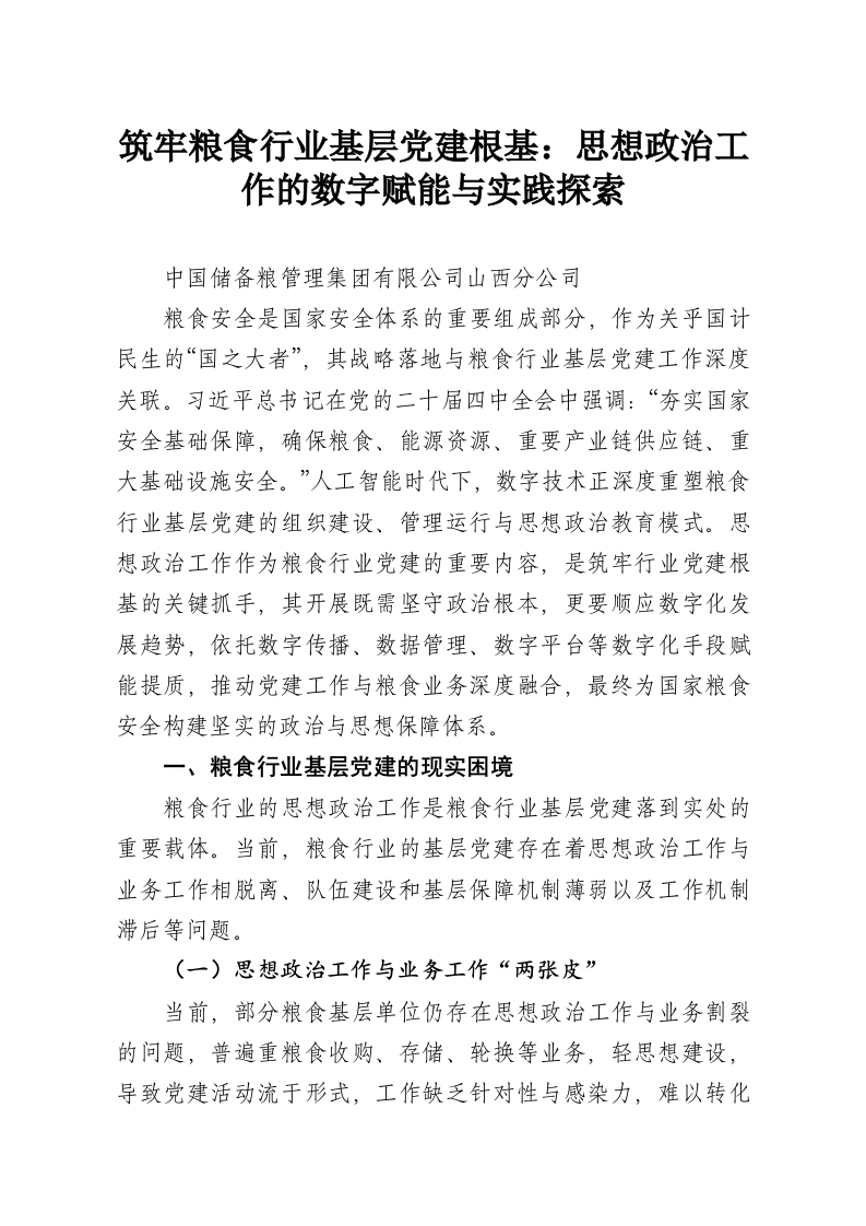 首页精选范文筑牢粮食行业基层党建根基:思想政治工作的数字赋能与实践探索