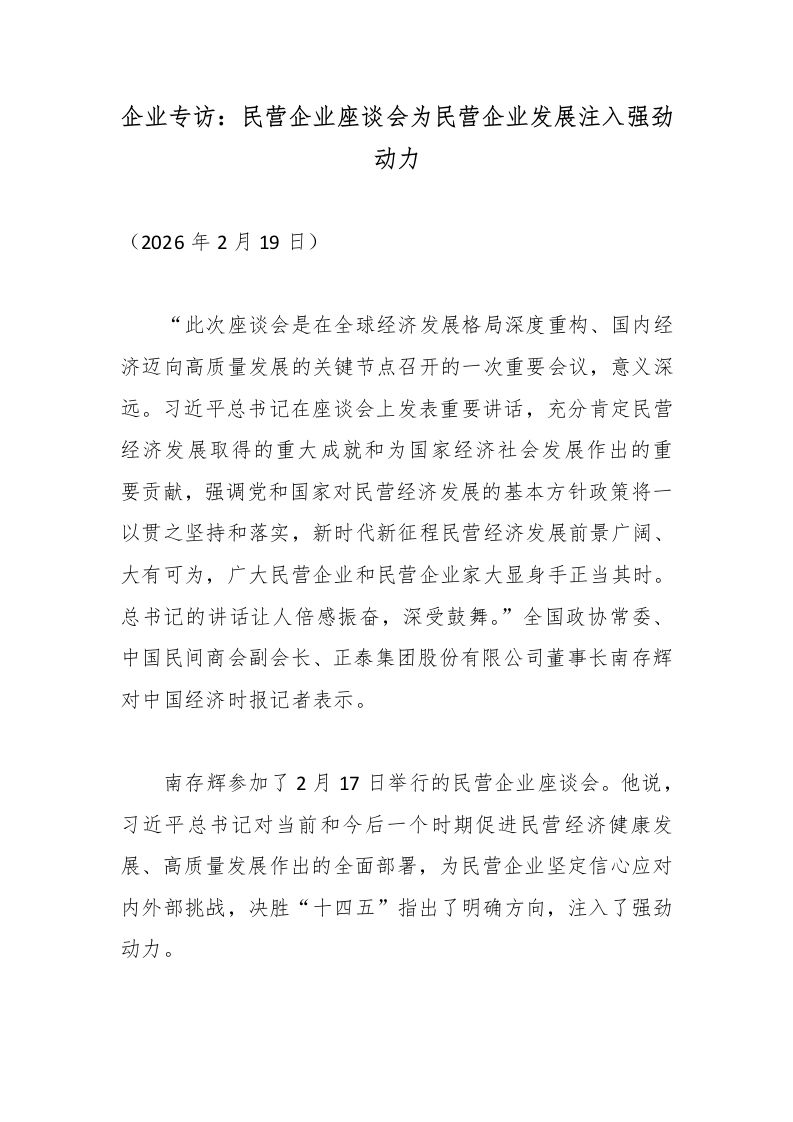 企业专访:民营企业座谈会为民营企业发展注入强劲动力