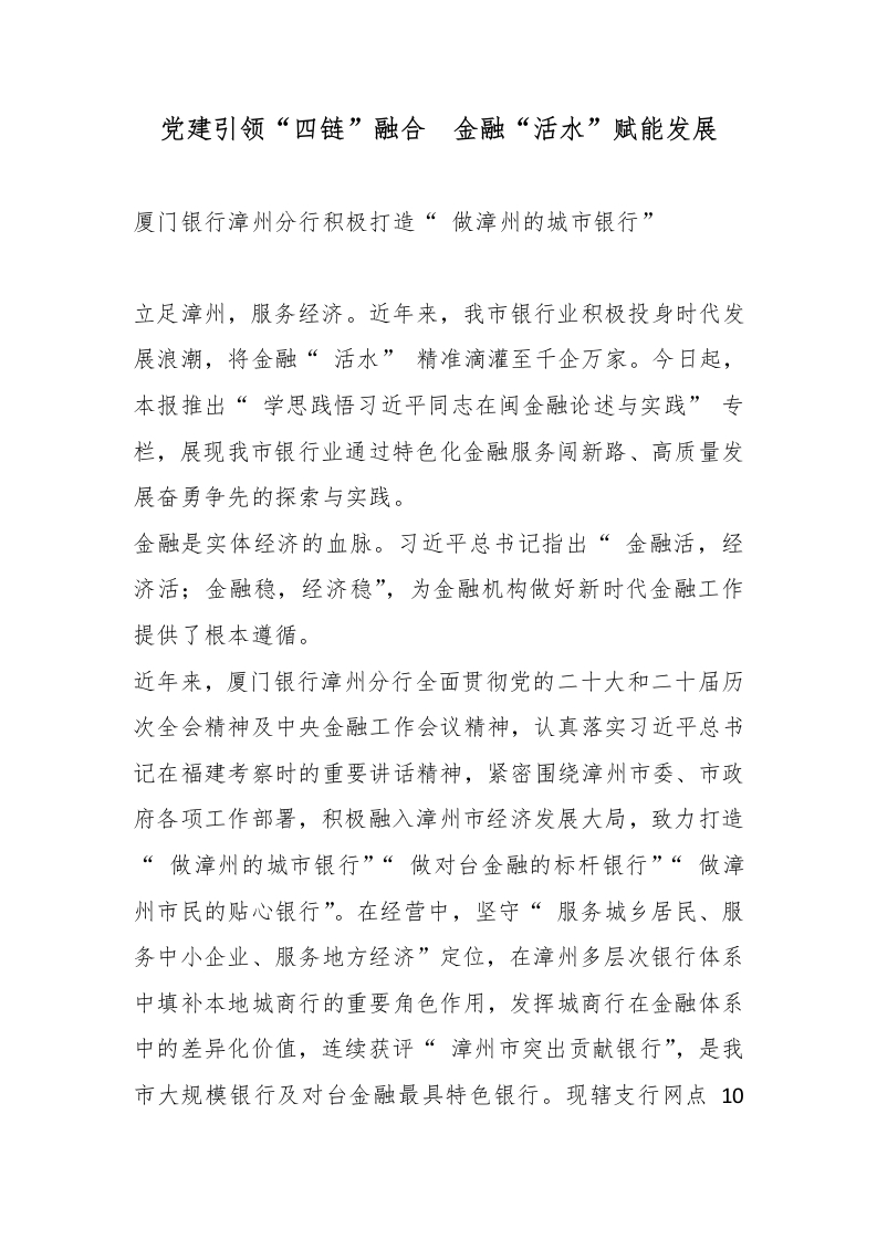 党建引领“四链”融合 金融“活水”赋能发展