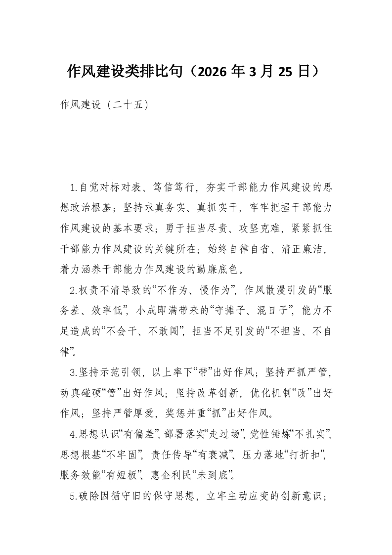 作风建设类排比句(2026年3月25日)