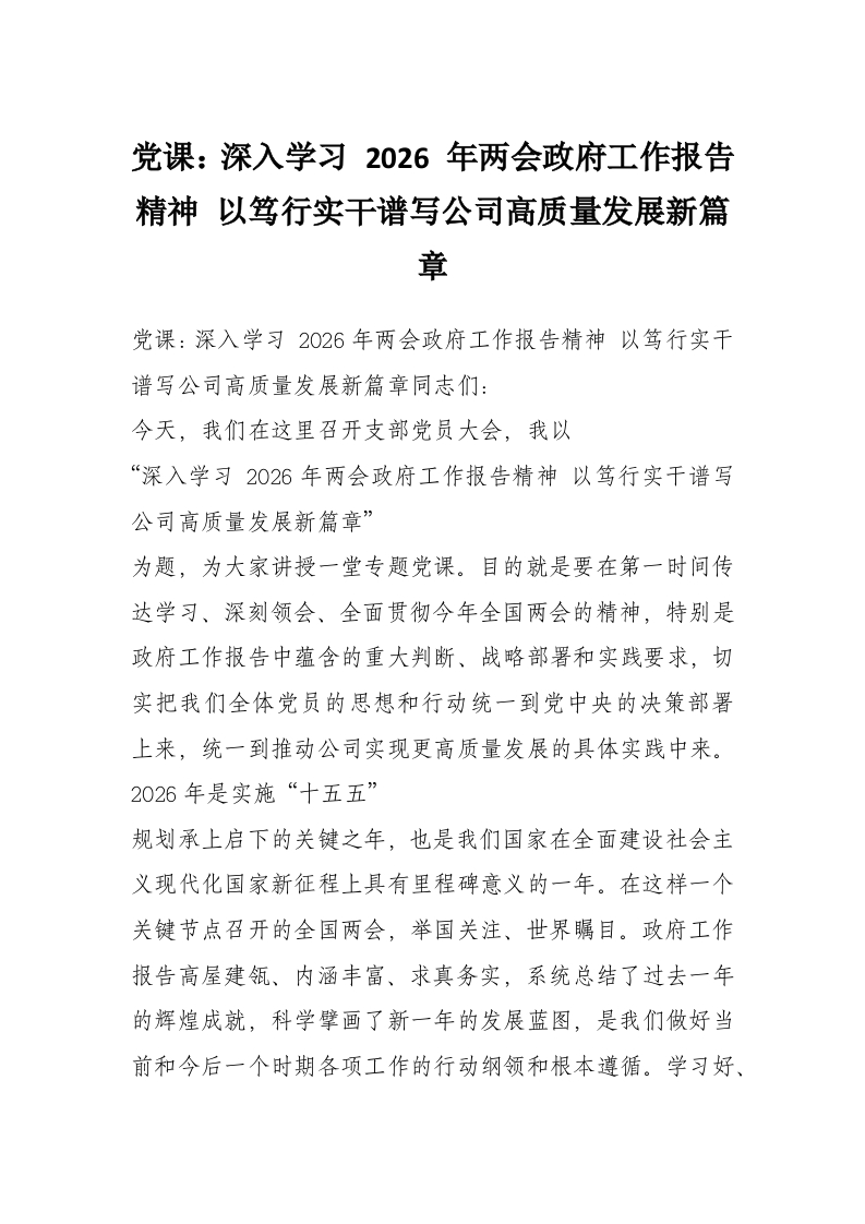 党课:深入学习 2026 年两会***工作报告精神 以笃行实干谱写公司高质量发展新篇章