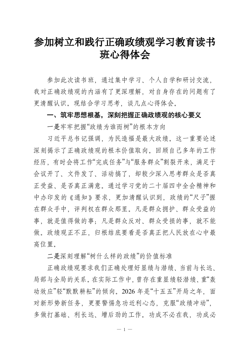 参加树立和践行正确政绩观学习教育读书班心得体会
