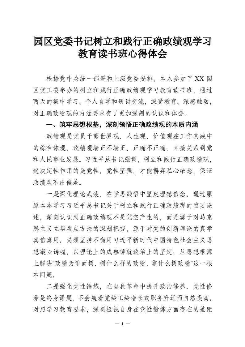 首页学习提升园区党委书记树立和践行正确政绩观学习教育读书班心得体会