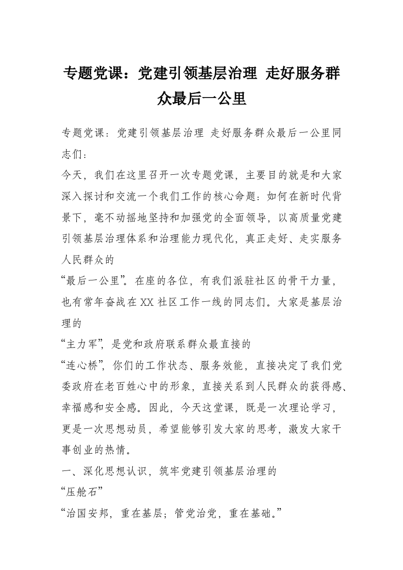 专题党课:党建引领基层治理 走好服务群众最后一公里