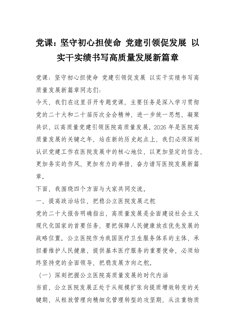 党课:坚守初心担使命 党建引领促发展 以实干实绩书写高质量发展新篇章