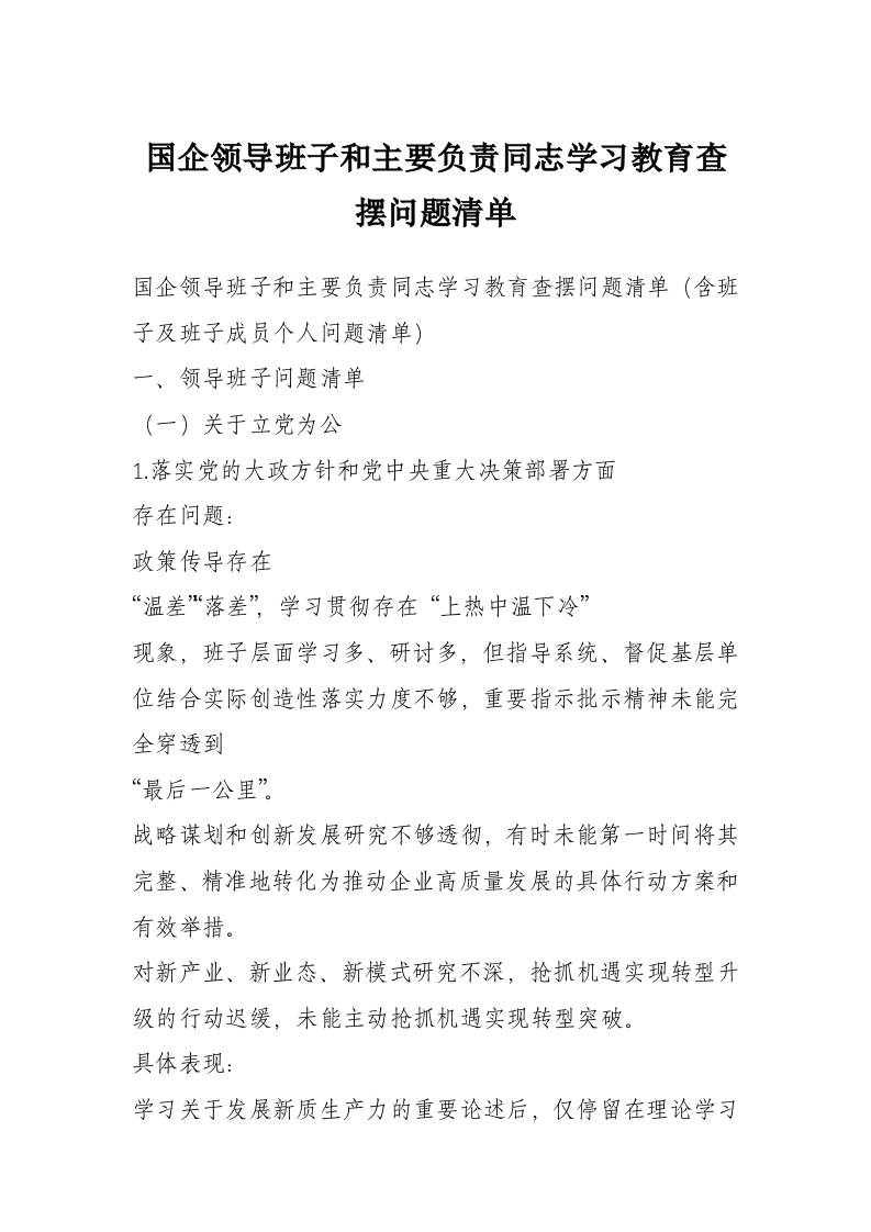 国企领导班子和主要负责同志学习教育查摆问题清单