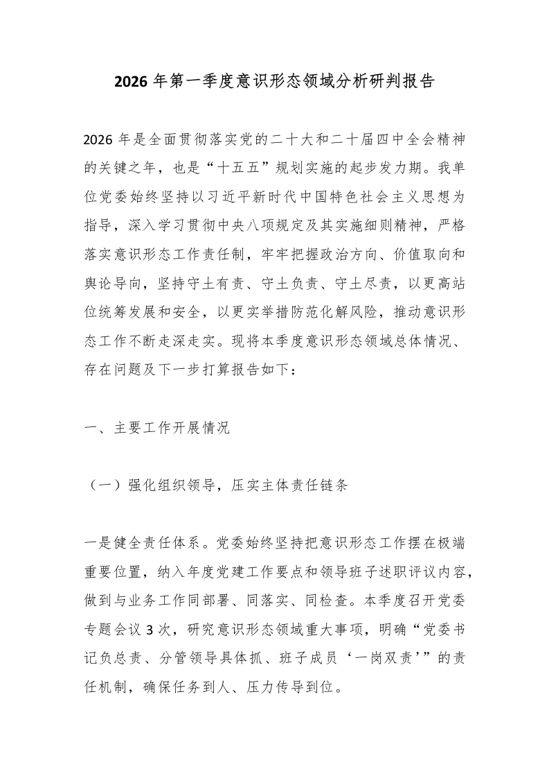 首页工作文档2026年第一季度意识形态领域分析研判报告_副本