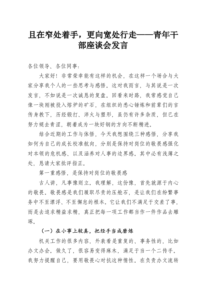 且在窄处着手,更向宽处行走——青年干部座谈会发言