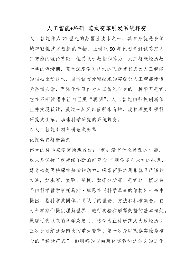 首页人民时评人工智能+科研 范式变革引发系统蝶变_副本