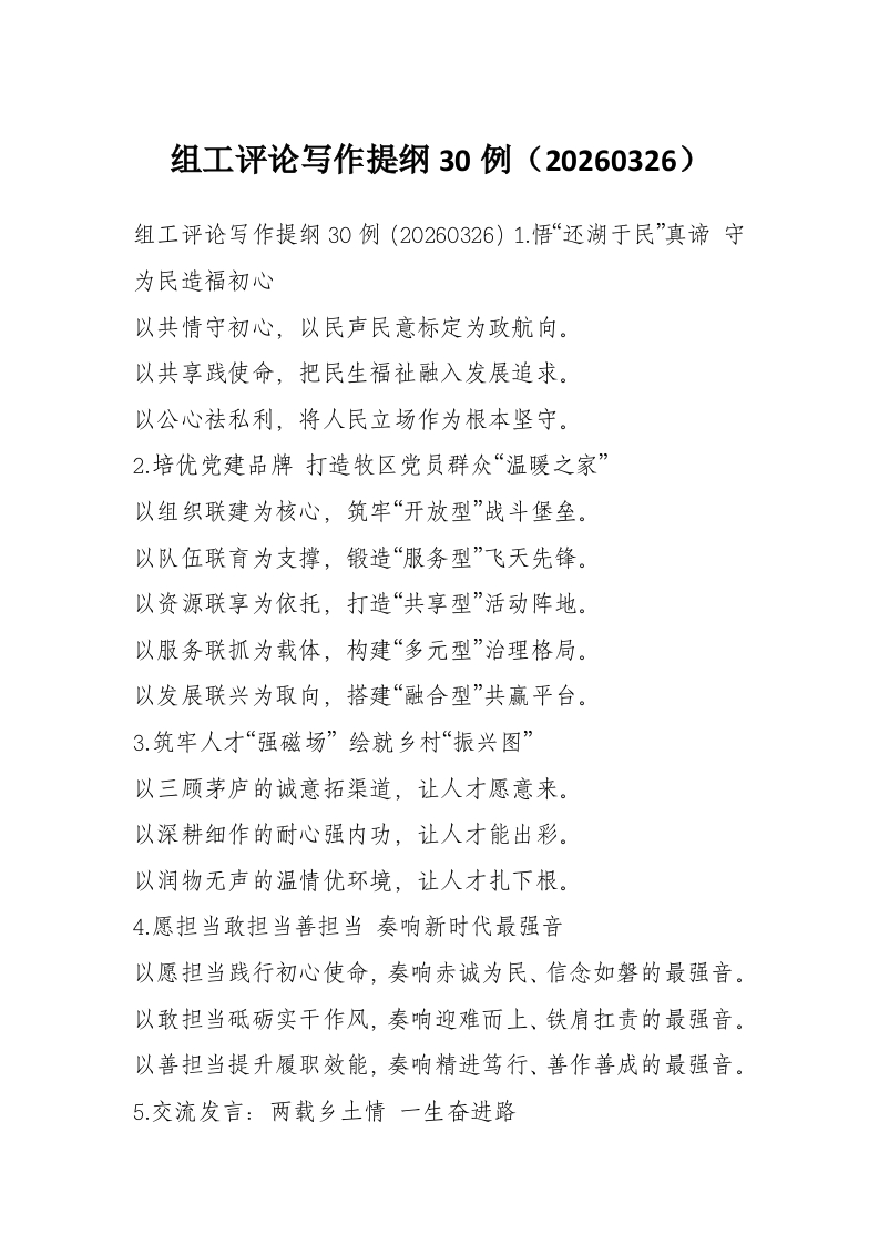 组工评论写作提纲30例(20260326)
