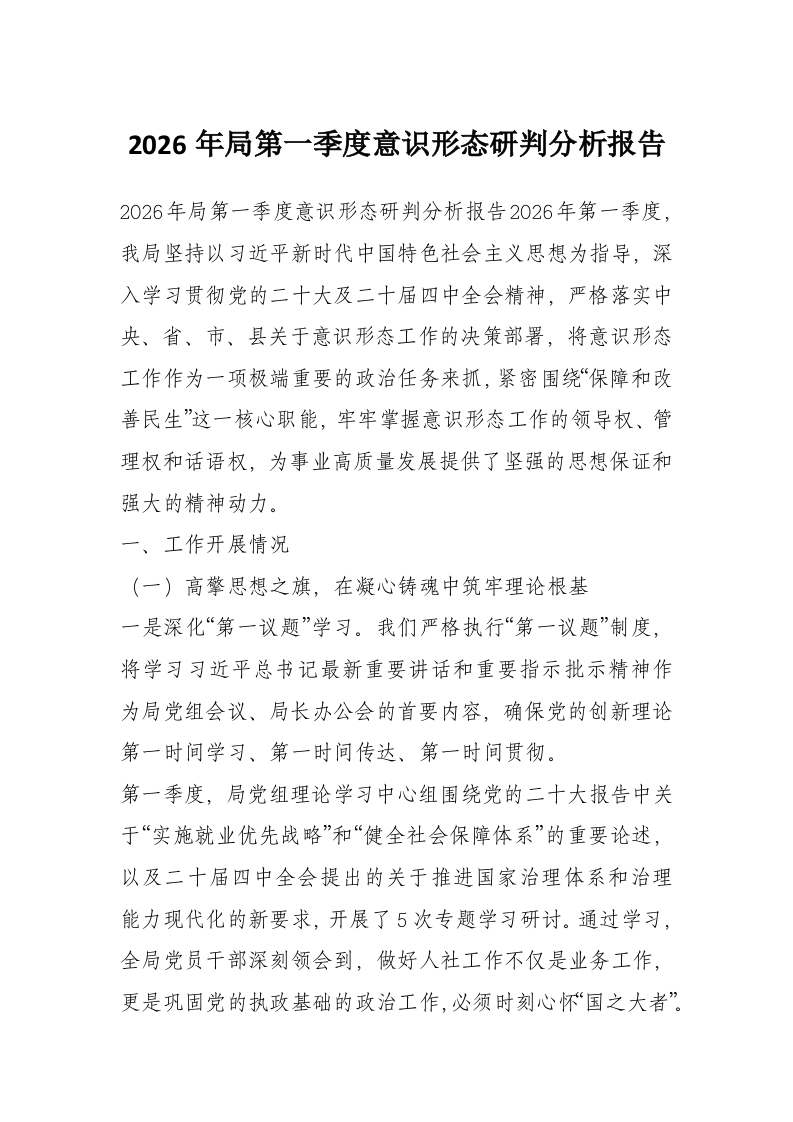 2026年局第一季度意识形态研判分析报告