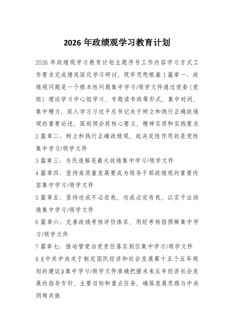 2026年政绩观学习教育计划