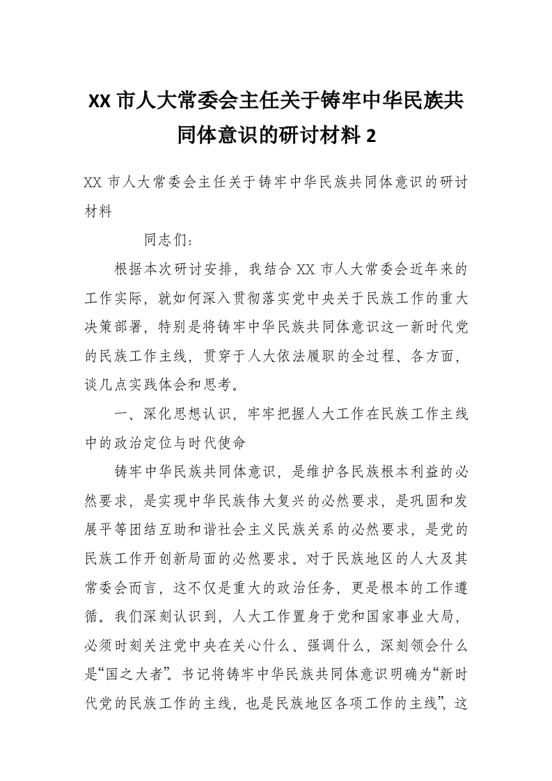 XX市人大常委会主任关于铸牢中华民族共同体意识的研讨材料2