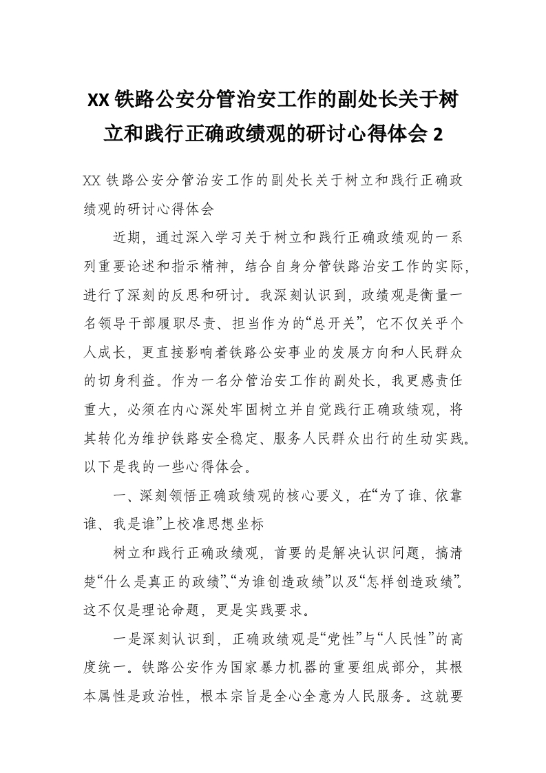 XX铁路公安分管治安工作的副处长关于树立和践行正确政绩观的研讨心得体会2